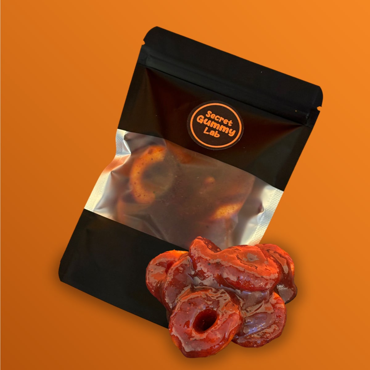 Ricas gomitas de aros de sandía ahogados en mucho de nuestro chamoy secreto.
