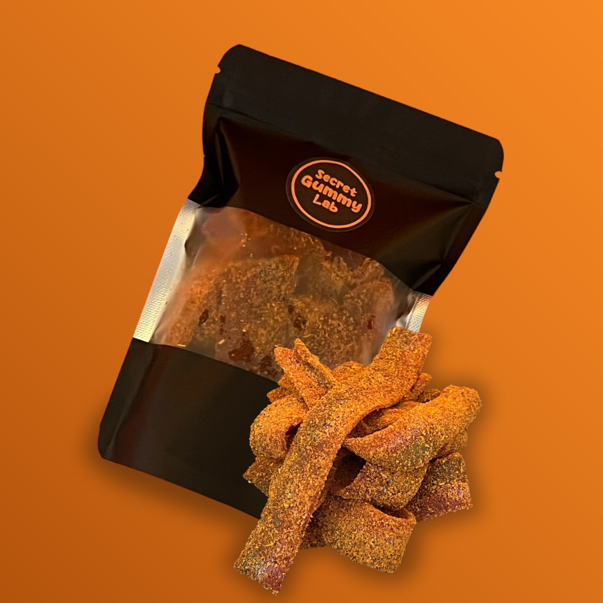 Ricas tiritas de sandía enchiladas con nuestro chamoy secreto y cubiertas en mix de chilitos, la combinación perfecta entre dulcecito, acidito y picosito.